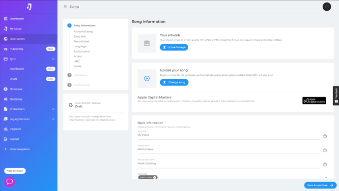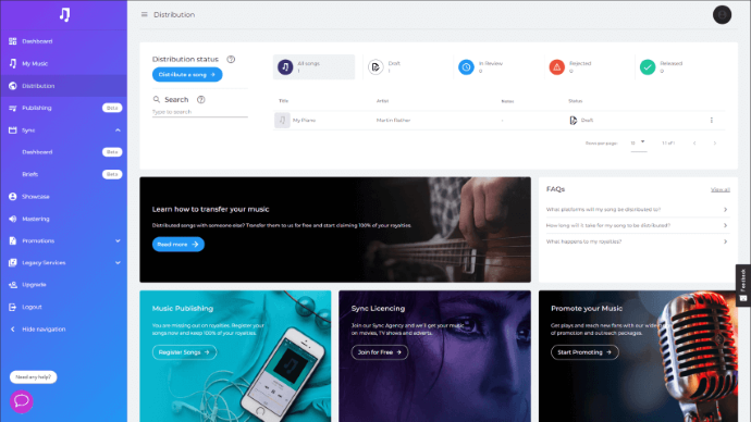 I was also at the forefront of building the Vue.js frontend of the new platform, driven by a Laravel API. This included integrating an artist 'website' system, as well as a full music distribution system for artists to submit their songs to various DSPs such as Spotify, Apple Music, and Pandora. Alongside this I also built out multiple tools for lead generation including a spotify search tool for finding up and coming artists.